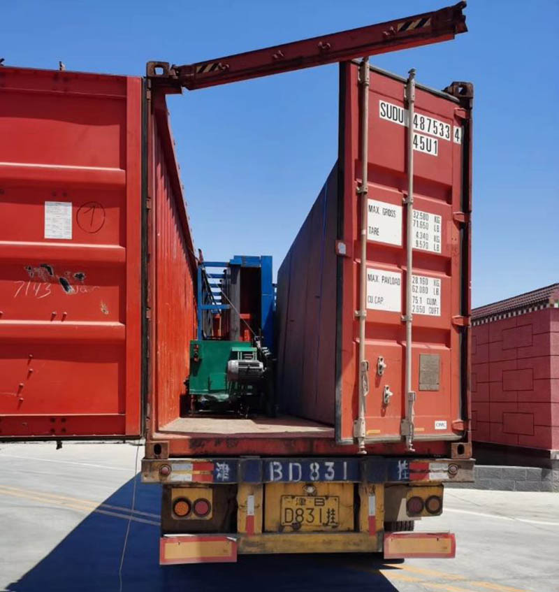 發(fā)往中東的拔絲機裝車運往天津港